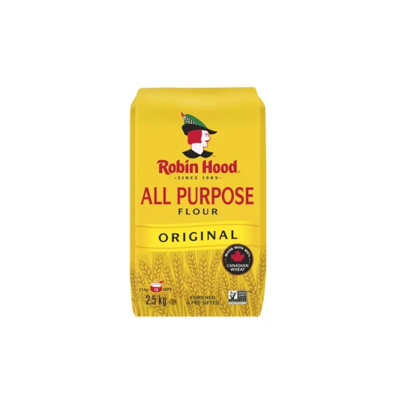 Robin Hood Original All Purpose Flour is a versatile kitchen staple perfect for all your baking and cooking needs. This high-quality flour comes in a convenient 2.5kg package, making it ideal for both professional bakers and home cooks.