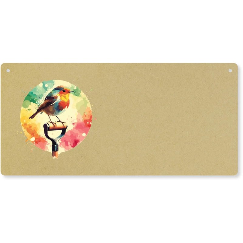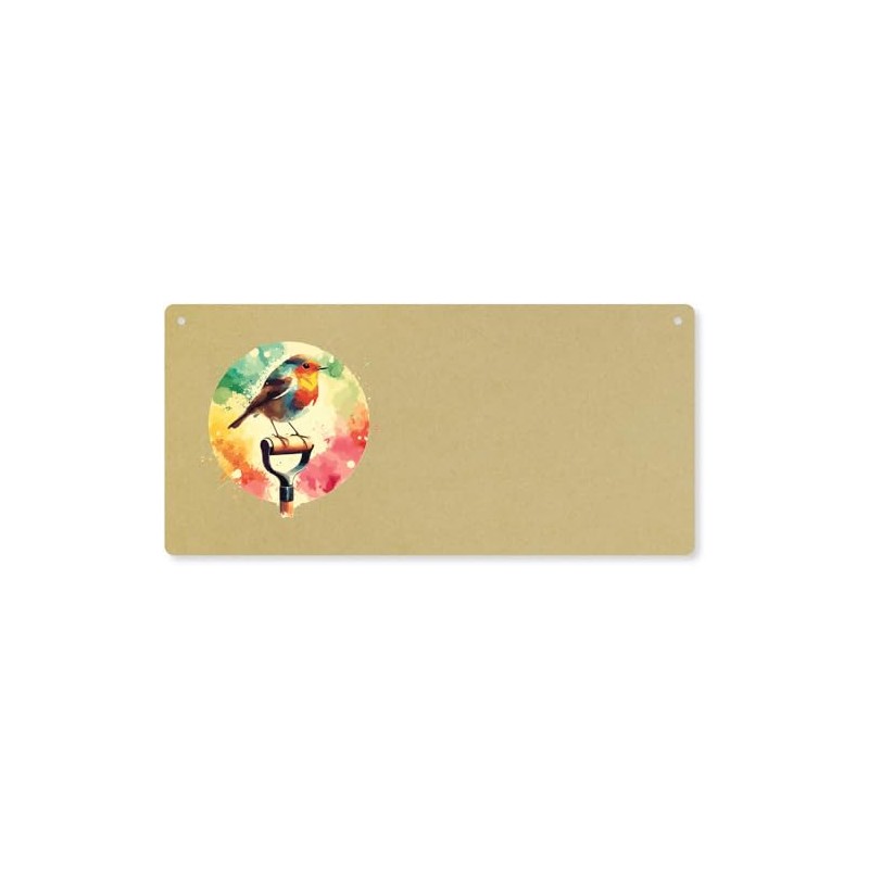 'Robin on a Garden Spade' Large Wooden Wall Plaque/Door Sign (DP00062406)