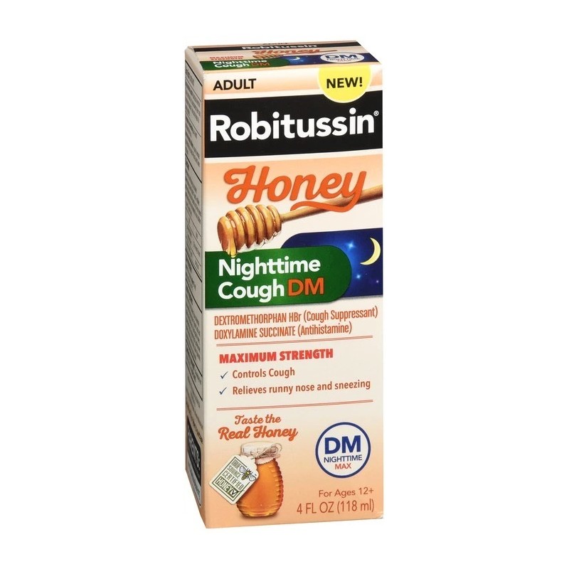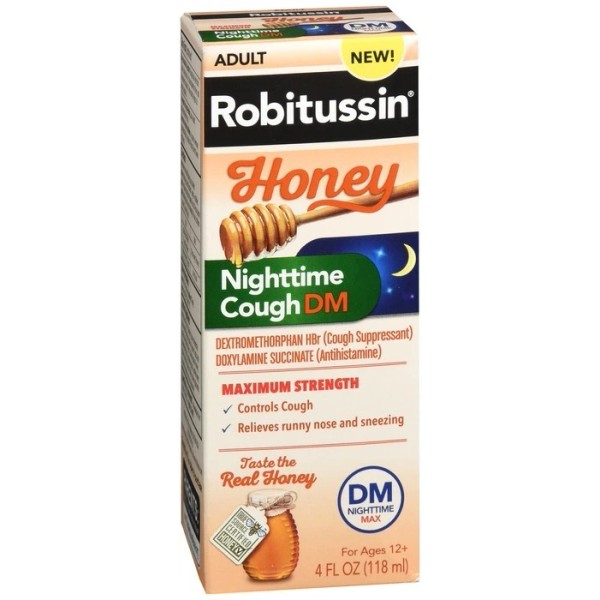 Robitussin Adult Honey Nighttime Cough DM Liquid Maximum Strength 4 OZ