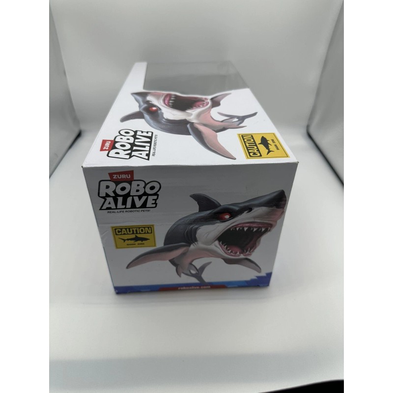 The product is a Robo Alive Great White Shark toy figure from the Jaws movie series. When activated in water, its eyes light up. It belongs to the Animals & Dinosaurs theme and is made of mixed materials. The model number is 71126 and it is part of Series 1. It is designed by the brand Robo Alive and is a boxing-themed toy figure. Free express shipping is available within the United States.