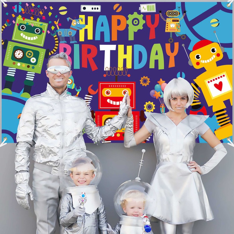 - 【Original design of happy birthday photo backdrop】Who can say no to these 4 adorable robot with different postures? The cartoon figures will be certainly welcomed by the kids. You can let your gusets to have interesting interaction with them even imitate them when you shoot the photos. The vivid color and unique design will add much vitality and happiness to your party.