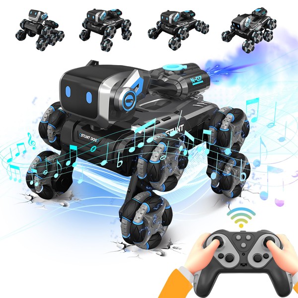 - Cool RC Stunt Car: The cool robot dog remote control car toy has 8 wheels, it spins, flips, goes backward, forward, turns left, turns right. Easily complete 360°rotation,crawling, drifting and other stunts, More stunts are waiting for you to explore. Suitable for 3+ years old boys and girls