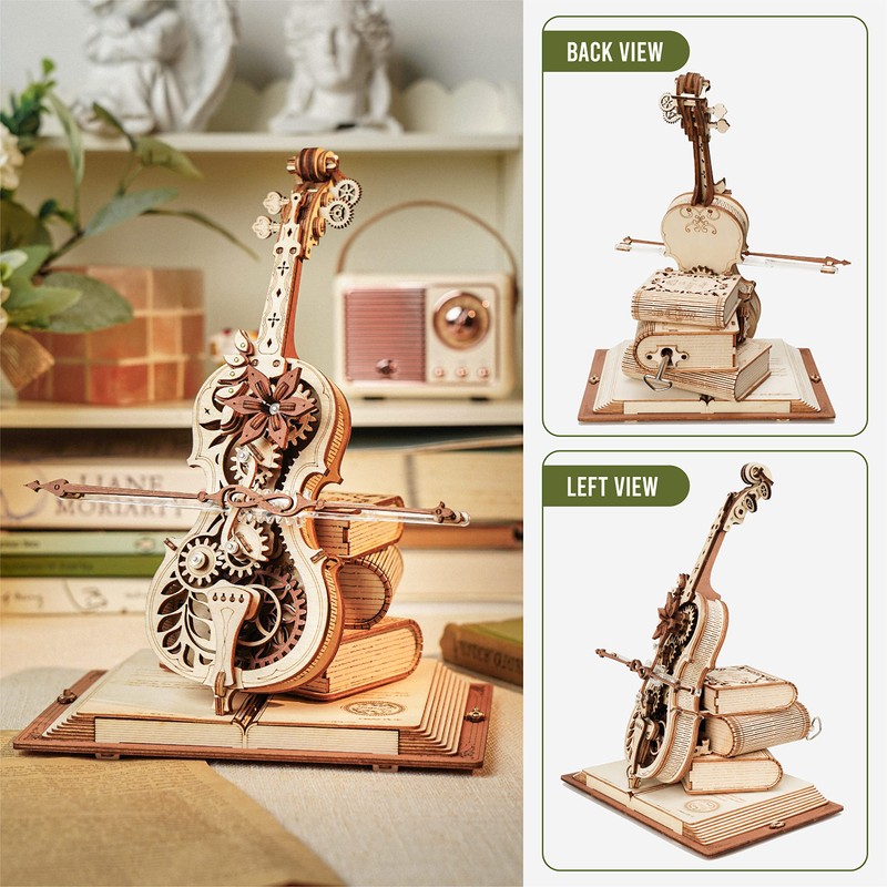 ROBOTIME 3D Puzzle Magic Cello Wooden Music Box Model Kits for Adults to Build, Gear Model Building Construction Craft Kits, Best Gift