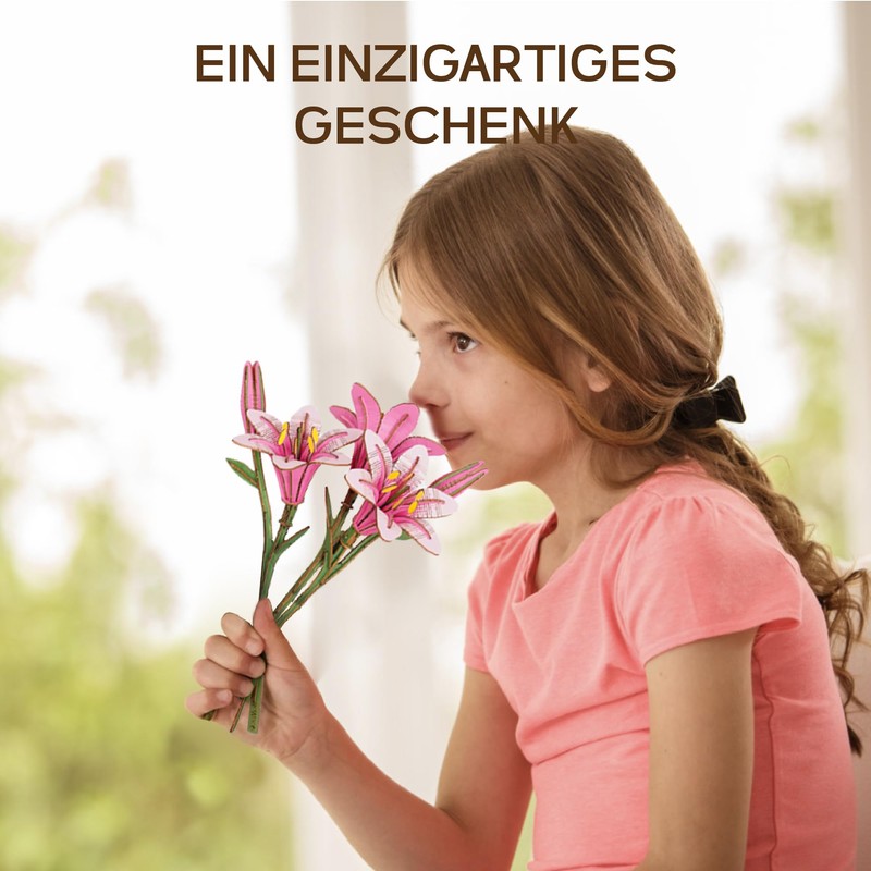 ROBOTIME 3D Wooden Flowers Puzzle Pink Lily Model Kits for Adults to Assemble, Artificial Eternal Flowers, DIY Craft Set, Valentine's Day, Mother's Day and Christmas
