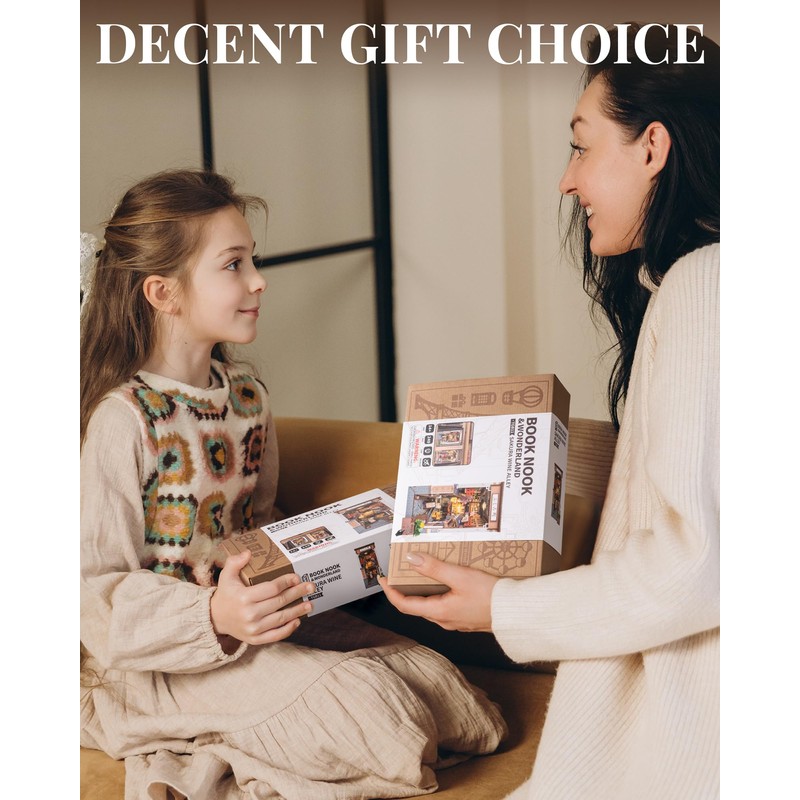 ROBOTIME Book Nook Kit DIY Miniature House Kit for Adults 3D Wooden Puzzle Bookends Bookshelf Diorama Insert Dollhouse Creative Decorative Unique Gifts for Teens and Beginners (Sakura Wine Alley)