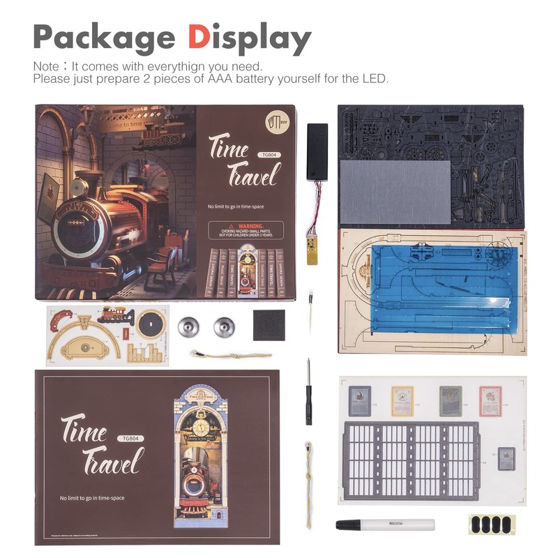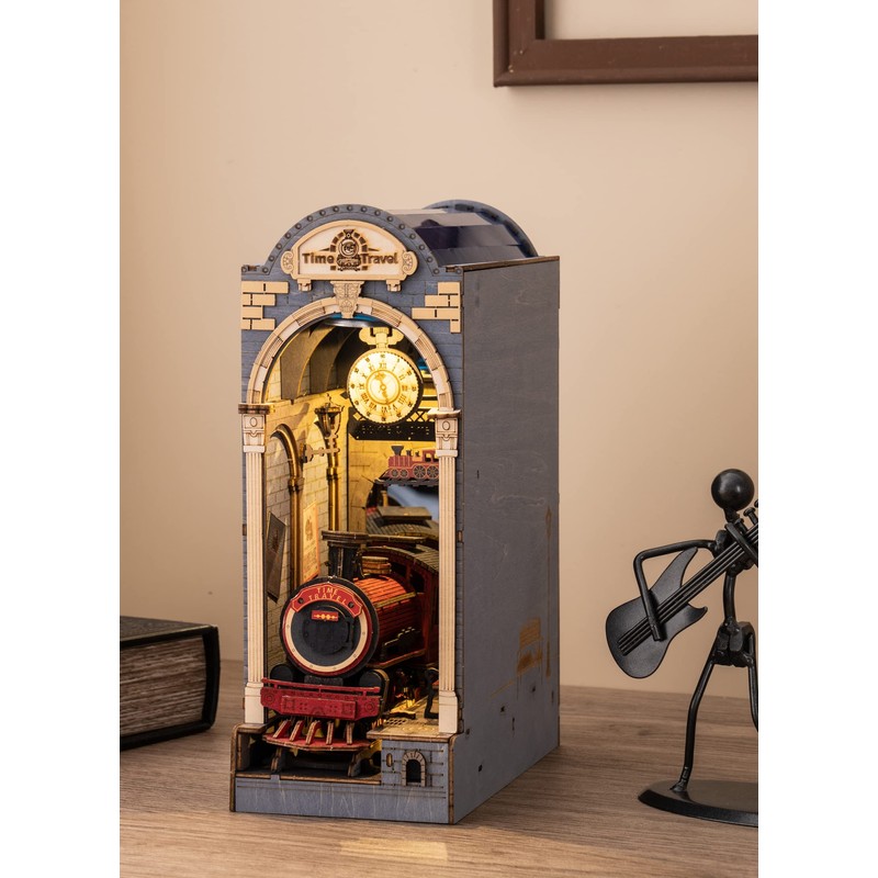 ROBOTIME DIY Book Nook Kit Insert Bookcase Book Stand 3D Wooden Puzzle DIY Miniature House Wood Bookend Book Nook Model Building Kit with LED Light Booknook Decoration (Time Travel)