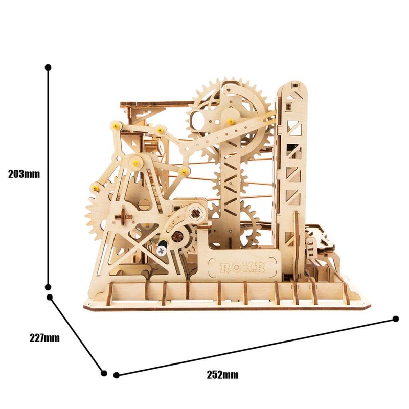 • Quality Self Propelled Marble Roller Coaster-The laser-cut technology enables the piece operates with its clever mechanical clockwork operation. Hand crafted by the finest master craftsmen using only time-honoured traditional methods and techniques. These high quality model kits are self propelled clockwork, no battery needed. Some wax and the tools provided will make them move smoothly.
