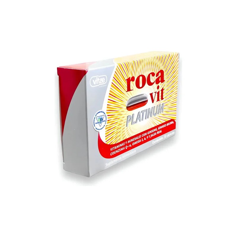 Descripción Limpia: Rocavit Platinum C/30 Cápsulas es un suplemento multivitamínico de la reconocida marca Vital And Young, diseñado para proporcionar una fórmula enriquecida con vitaminas y minerales esenciales que contribuyen al bienestar general del organismo. Este producto es ideal para quienes buscan complementar su dieta diaria de manera efectiva. Las cápsulas son fáciles de ingerir, lo que facilita su incorporación en la rutina diaria. Además, Rocavit Platinum es libre de gluten y no contiene lactosa, lo que lo convierte en una opción adecuada para personas con restricciones dietéticas. Es un suplemento vegano, lo que lo hace accesible para quienes siguen una dieta basada en plantas. Presentado en una práctica lata, cada envase contiene 30 cápsulas, garantizando un suministro adecuado para su uso nutricional. Con un enfoque en la salud y el bienestar, Rocavit Platinum es la elección perfecta para quienes desean optimizar su ingesta de nutrientes esenciales.