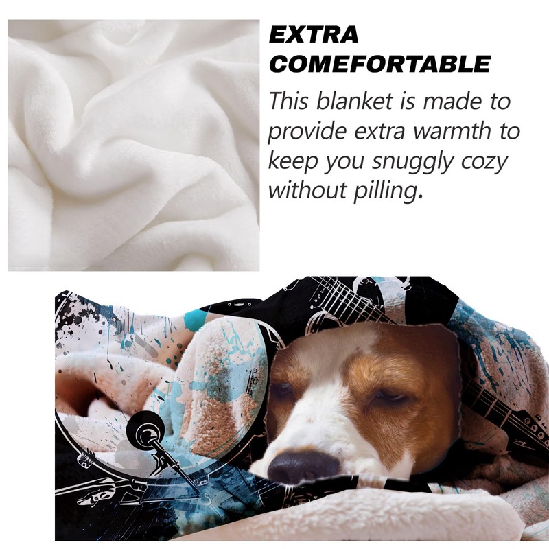 Rock Band Music Throw Blanket for Adults Kids, 50x60 in, Electric Guitar Theme Flannel Blankets for Bedroom, Couch, Travel, Home Decor, Fuzzy Soft Cozy Warm Gifts