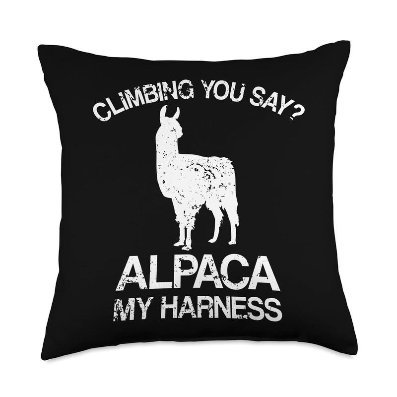 Rock Climbing Enthusiast Climber & Bouldering Wear Climbing You Say Alpaca My Harness Camel Lover Mountaineer Throw Pillow, 18x18, Multicolor