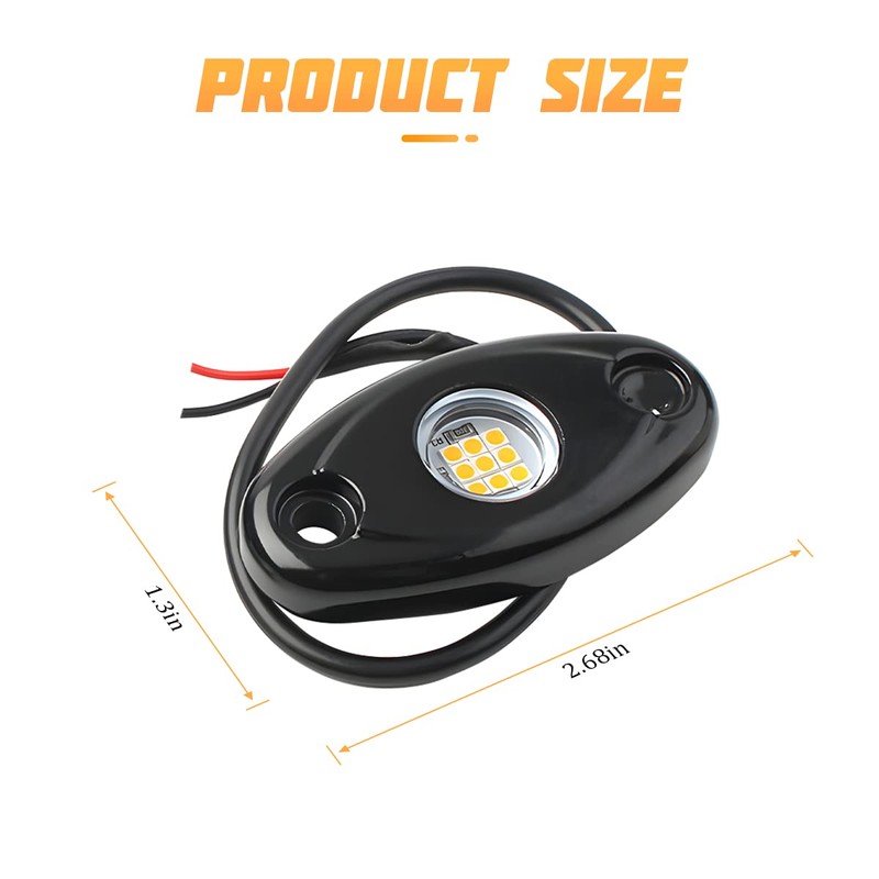 - 【Designed for Quality】: High quality aluminum alloy shell, with great corrosion resistance, light weight and high strength, easy to use. The working life of these rock lights is 30,000 hours, and it can maintain good working condition in various harsh environments. Whether driving in the desert, lake, or road full of gravel, it can perform well.