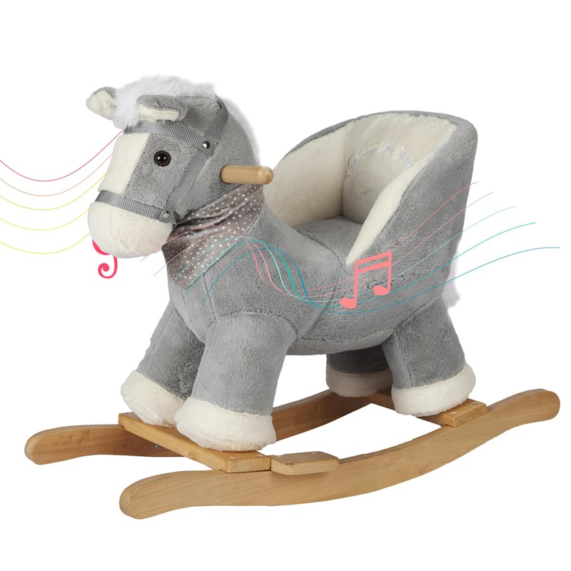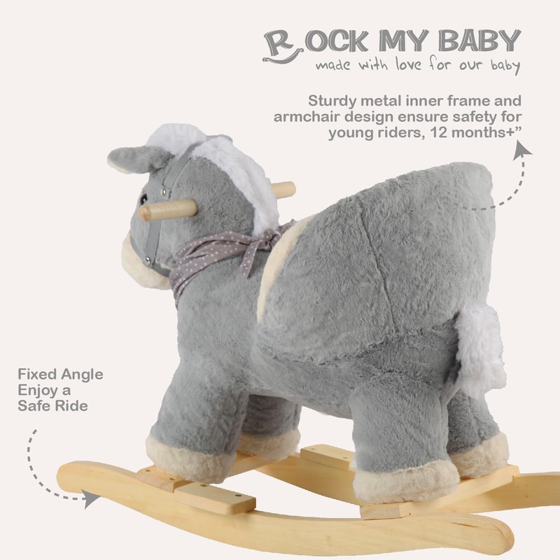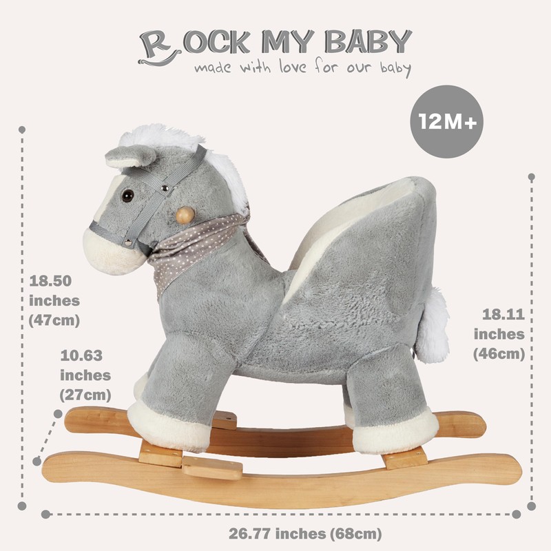 Rock My Baby Rocking Gray Horse with Chair, Plush Stuffed Rocking Pony with Realistic Sound, Baby Rocker Animal for Toddlers 1-3 Ride on,CPC Certified