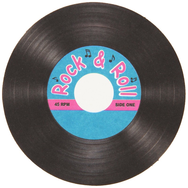Beistle 57148 Rock & Roll Record Coasters (8 Count). Put a little rock 'n roll around your drinks of the night with these 50's themed coasters that are great to add to any event! They are made of foam-backed board stock and measure 31/2 Inch.