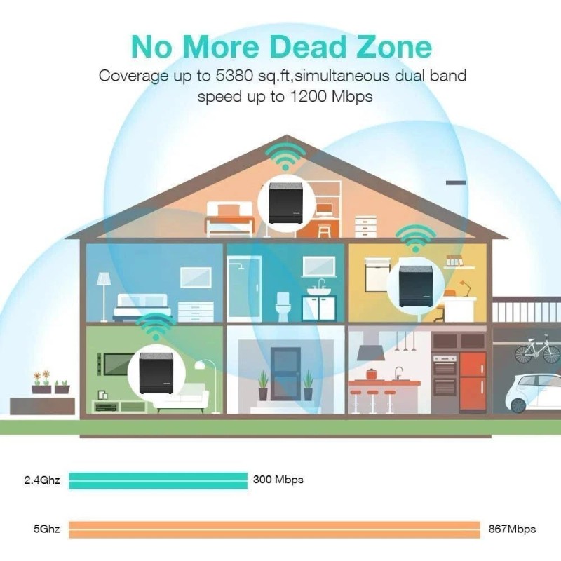 Rock Space Whole Home Mesh WiFi System, 1200Mbps WiFi Router & Extender - 3 Pack
