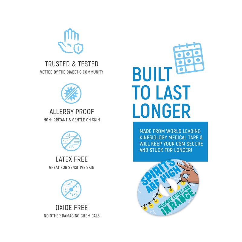 RockaDex Christmas Design Adhesive Patches 5 Mix Pack Compatible with Dexcom, Libre, Medtronic and Omnipod - Manufactured by a Type 1 Family. (Dexcom G7 with Overtape)