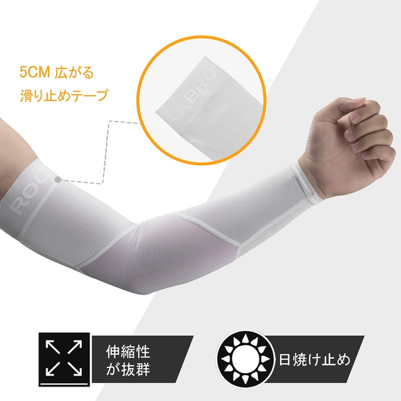ROCKBROS Arm Cover, Cold Sensation, UV Protection, Anti-Slip, Sweat Absorbent, Quick Drying, Arm Sleeve, Summer, Sports, Golf, Bicycle, Men's, Women's, Farming, Fishing, Baseball, Unisex, White