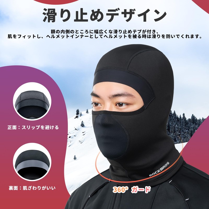 The brushed material is lightweight and warm, and can be worn under a helmet to prevent cold winds.