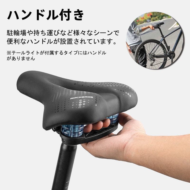 - Ergonomic Design: Features a streamlined design and a slimmer front to prevent wear on the inner thigh and crotch. The rear part is wider to increase the pressure area and increase the support of your buttocks, so you can enjoy a comfortable ride even for long periods of time and long distance cycling. The wide handle provides a firm grip for a stable grip