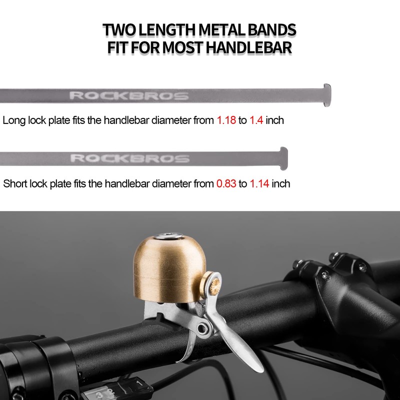 - Loud Tone:ROCKBROS bike mini bell has a loud clear ding,mini bell has huge power to warn the pedestrians and passing vehicles that you're coming up behind them,making your cycling journey safer.Enjoy the sweet classic bike bell music on the way