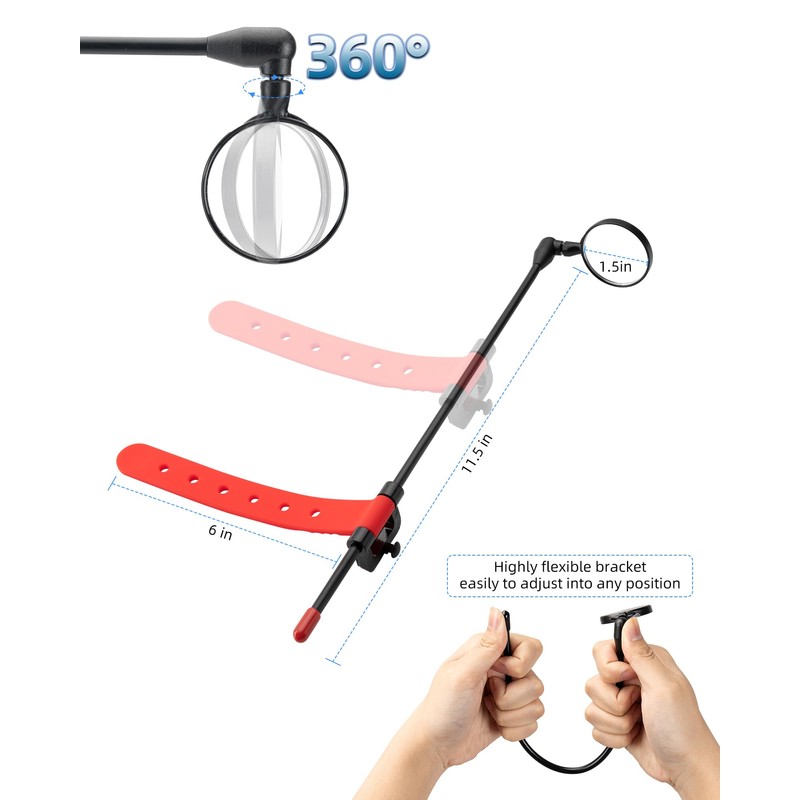 - ✔Enhanced Safety: Built with sturdy aluminum alloy pole and a shatterproof high-definition mirror, our bike helmet mirror provides reliable safety and security for your cycling journeys. The 360-degree adjustable mirror coupled with the flexible and foldable bracket ensures a maximized and stable viewing angle.