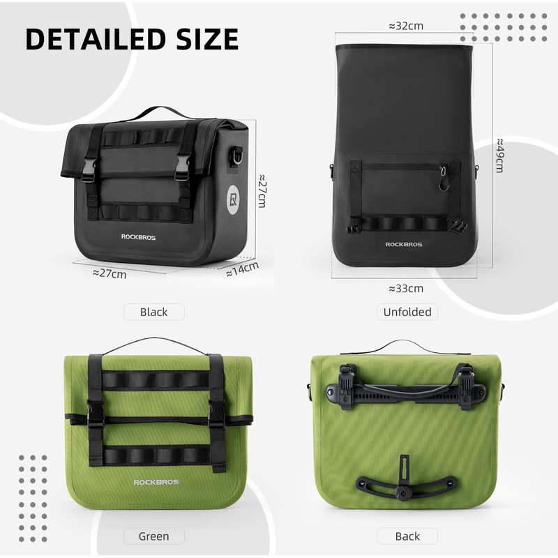 - Large Capacity Rear Rack Bag: The ROCKBROS panniers bike bags boasts a maximum capacity of 15 liters, effortlessly accommodating all your essentials for a day of riding, including a laptop, clothes, and cycling accessories. Perfect for use as a commuting or touring bag for outdoor adventures.