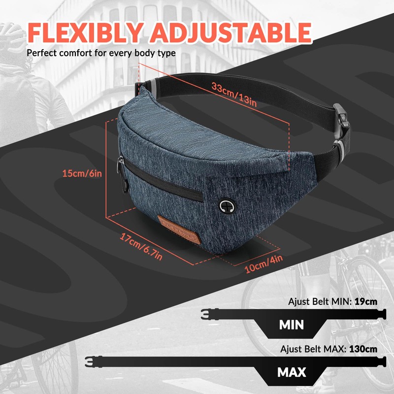 - 【Details and Design】: There is a headphone hole on the side of the fanny pack, so you can listen to music comfortably while running. The zipper with drawstring makes the zipper smoother. The reflective strips improve visibility at night.