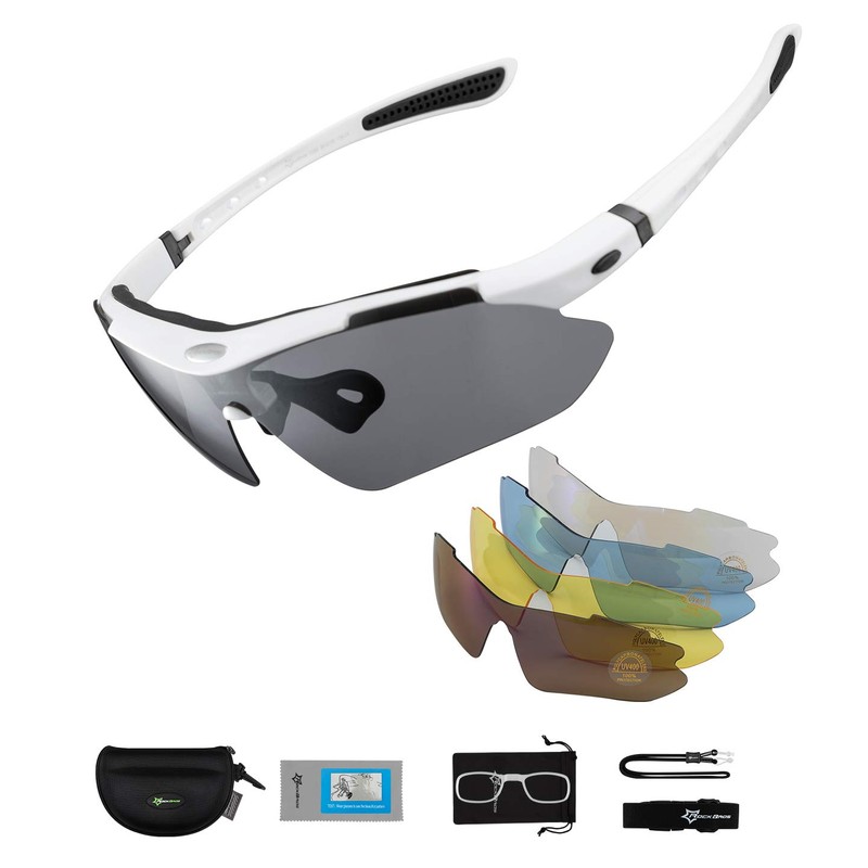- Package includes: polarised sunglasses x 1, interchangeable lens x 4, EVA box x 1, glasses bag x 1, glasses cloth x 1, glasses rope strap x 1, test card x 1, sports band x 1 and myopia frame x 1.
