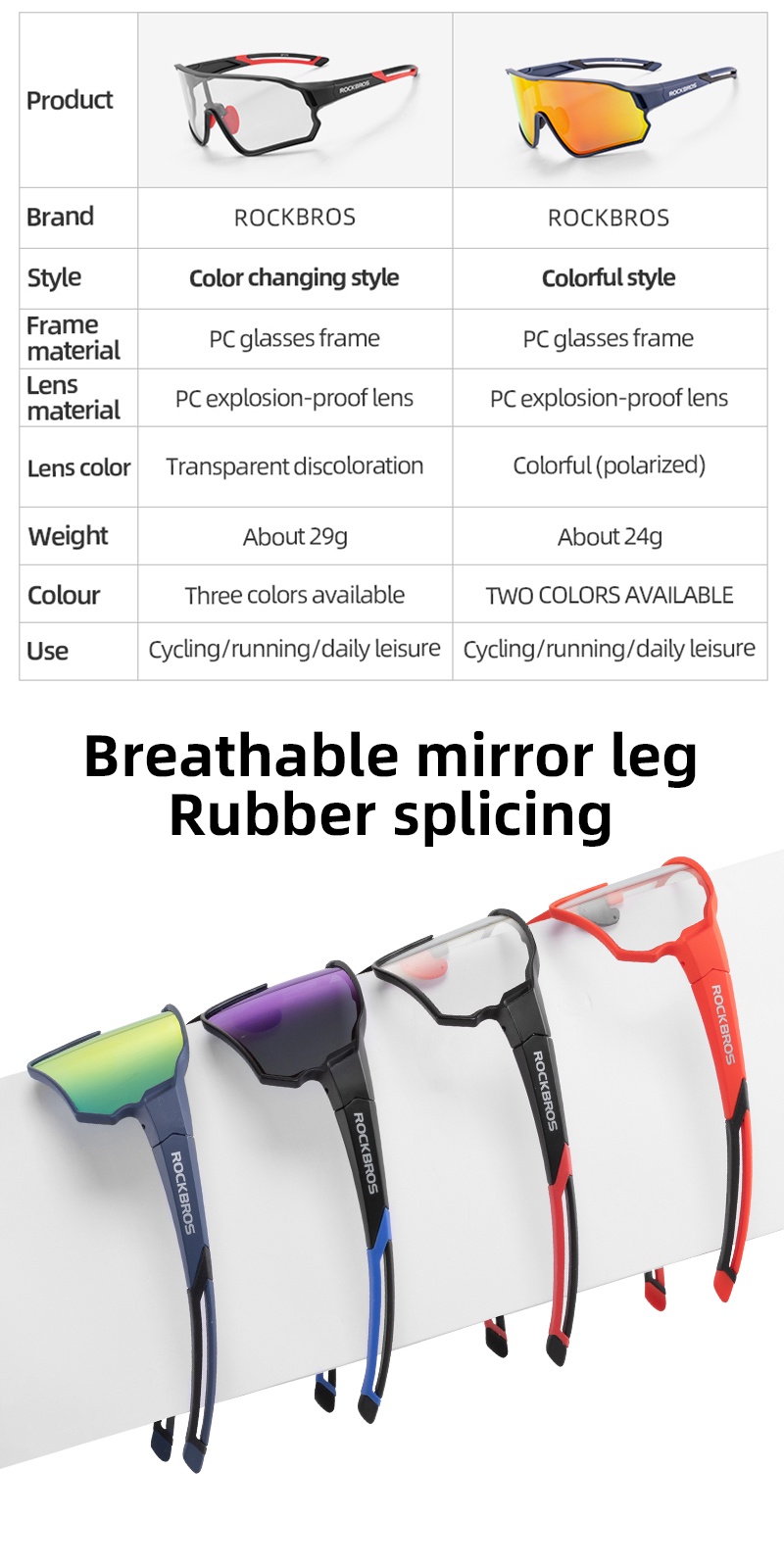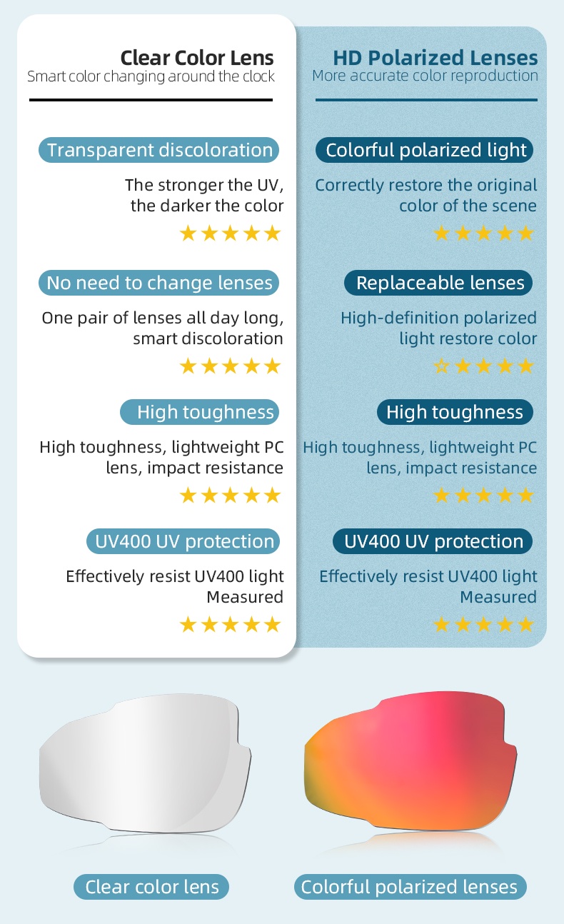 【FEATURES】: PC lens + TR frame make this sunglasses more durable, the lens is also easy to clean after get dirty. The air hole on the temples reduce the the wind resistance when you cycling, make you cycling without burden.