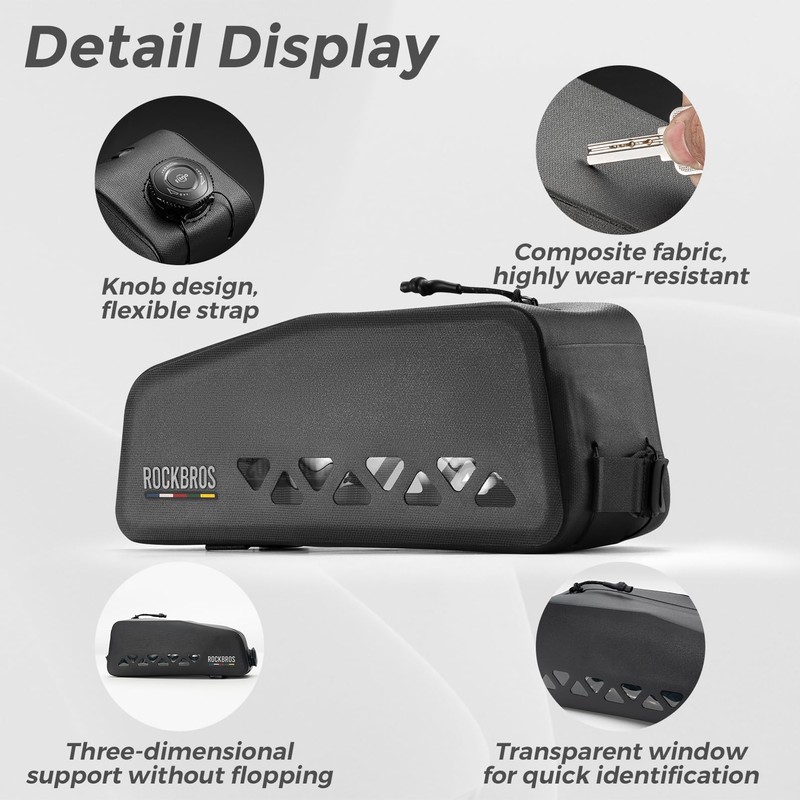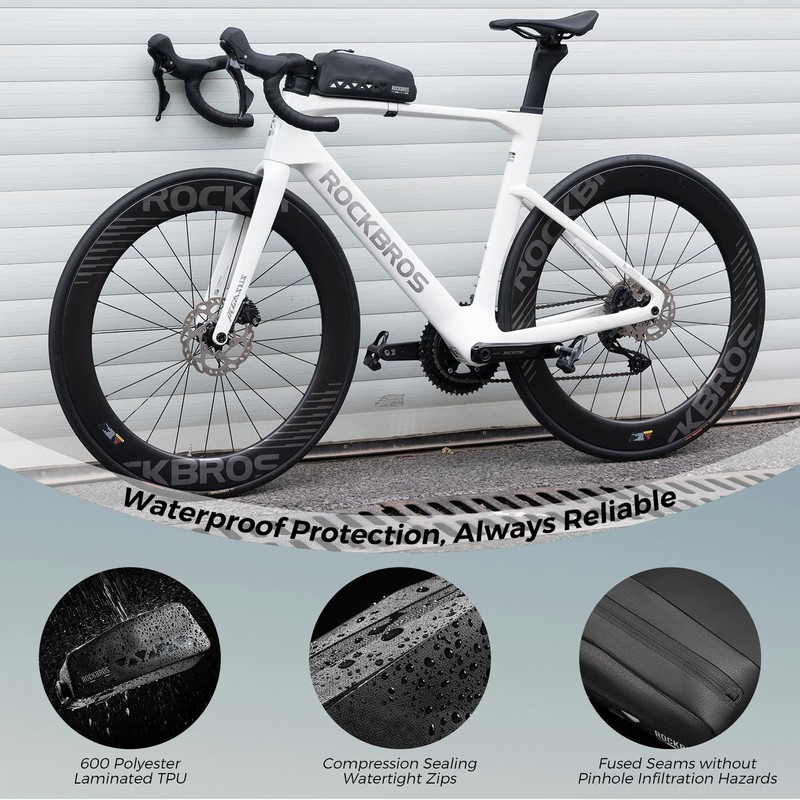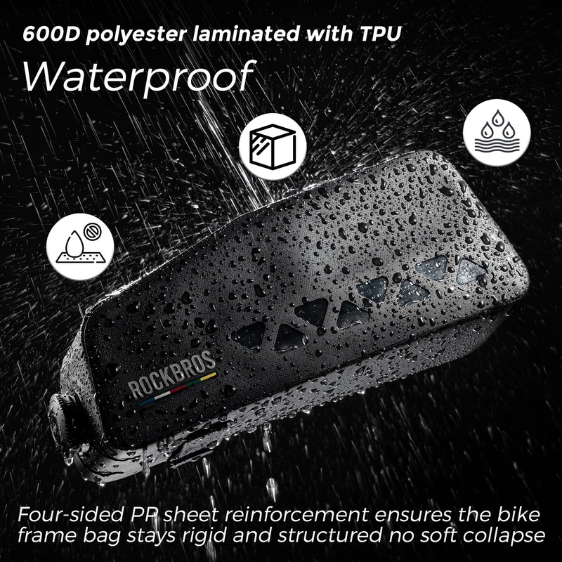 - Waterproof Protection: This top tube bike bag combines 600D TPU composite fabric and seamless compression moulding with waterproof zips, making it an ideal bike storage bag for all weather. The waterproof design defends against rain and splashes. While four-sided PP sheet reinforcement ensures the bike frame bag stays rigid and structured no soft collapse, effectively protect items from collision damage.