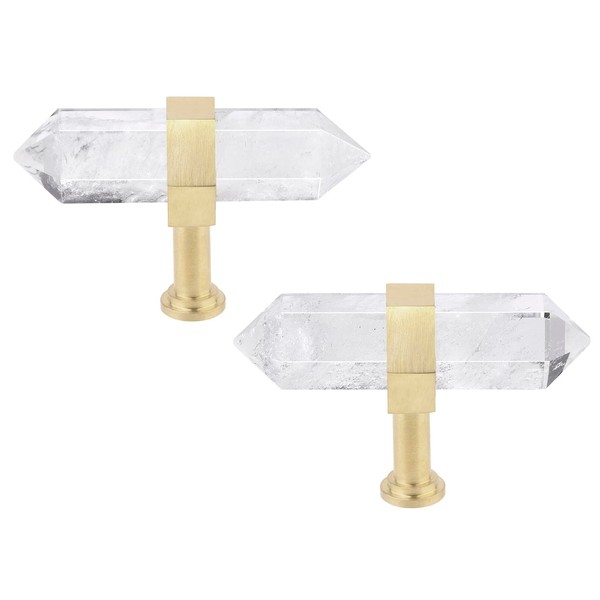 Rockcloud Pack of 2 Crystal Point Stone Drawer Knobs with Screws Cabinet Knob Cupboard Pull Handle Home Decoration, Rock Crystal