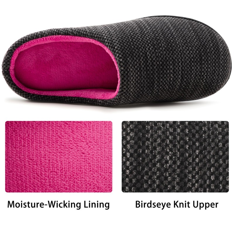 RockDove Women's Birdseye Knit Memory Foam Slipper, Black/Fuchsia, 5-6