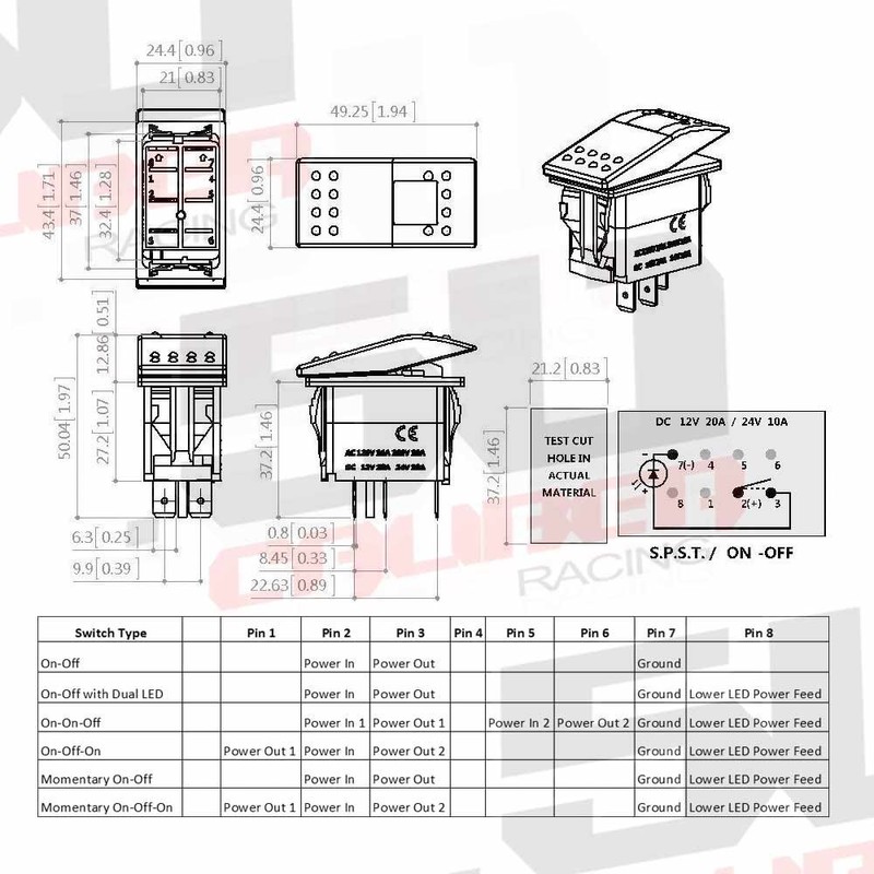 - - 20 amp Momentary (Spring Loaded) LED illuminated rocker switch