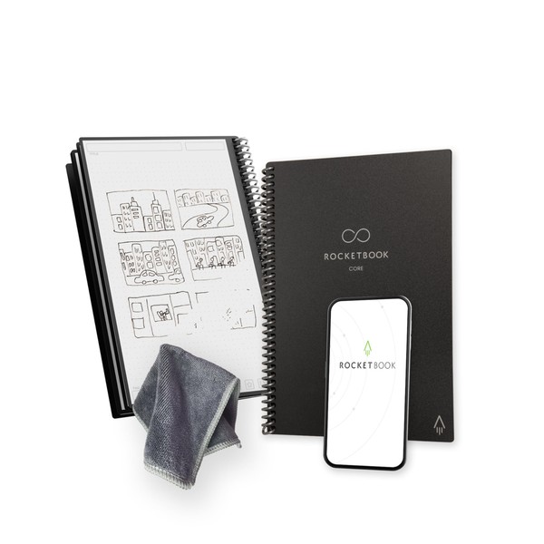 - High-Quality Durable Materials: Crafted with reusable, premium dotted pages, the Rocketbook Core features spiral binding and a waterproof cover. The grid layout offers flexibility for everything from bullet journalling to geometric sketches.