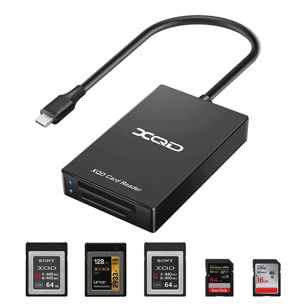 - 【Professional Type C XQD SD Card Reader】 The dual slot SD / XQD card reader adapter is specially designed for photographers,Convenient to download pictures and videos from XQD card reader to your smartphone / laptop / computer,Through the USB C interface,Provide a universal transmission solution between a multi-format memory card and a PC or tablet.