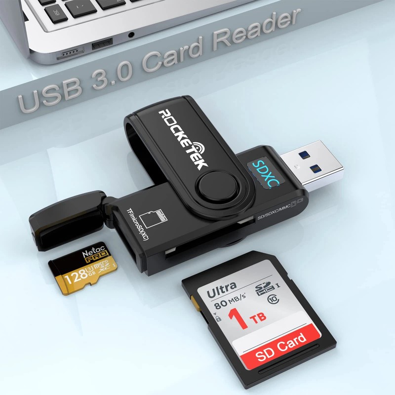 USB 3.0 SD Card Reader, Rocketek 2 Slots Memory Card Reader with a Bui Personal Computers