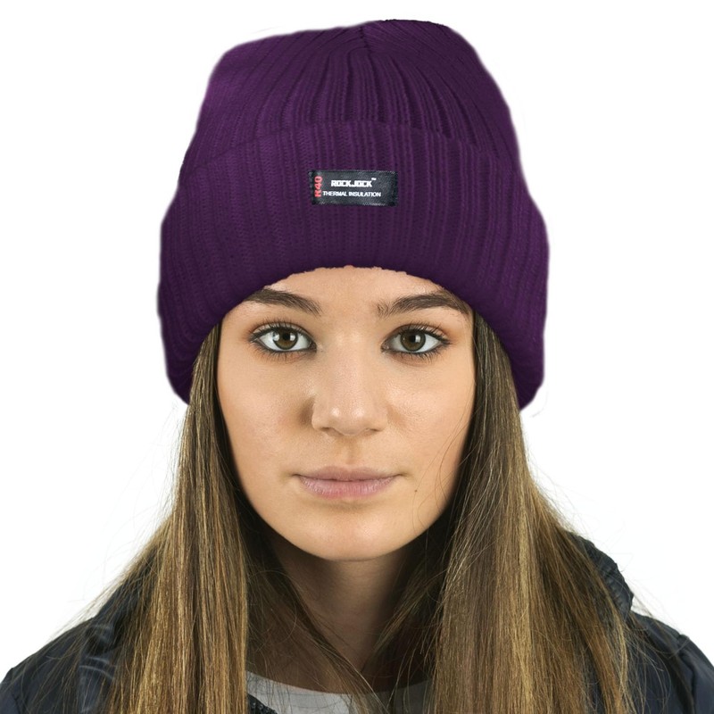 RockJock Ladies Womens Warm Winter Lined Beanie Hat with R40 Thermal Insulation-DKPURPLE