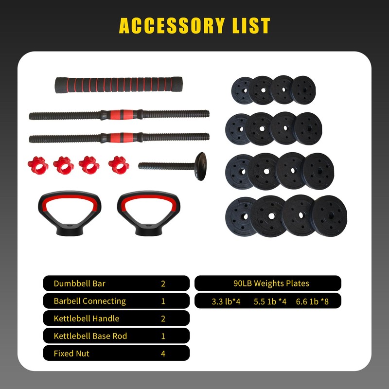 - *4-in-1 Versatile Conversions*: Switch between dumbbell, barbell, kettlebell and push-up stands with one compact system