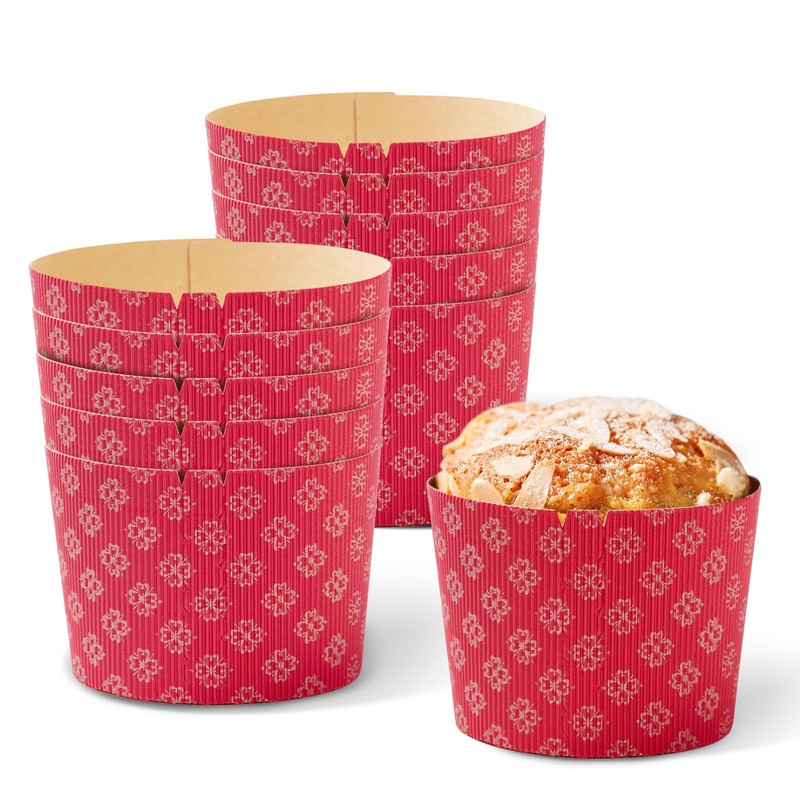 ROCKSHEAT 5" Panettone Paper Cups, 10 Pack Heat Resistant Easter Bread Disposable Baking Cups, Large Paper Baking Cups, Kulich Molds for Baking (Red)