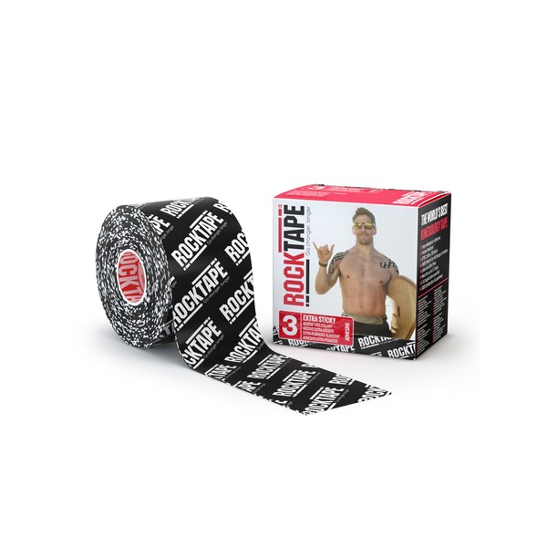 RockTape Extra Sticky 2" x 16.4' Kinesiology Tape (Logo,Black), Athletic Tape for Muscle Pain Relief, Injury Recovery, Microscopic Skin Lifting & Decompression, Sweat & Water Resistant, Hypoallergenic