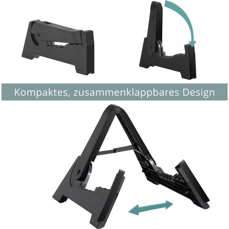• Foldable universal stand for electric guitars, acoustic guitars, electric basses and acoustic basses, ideal for on the go