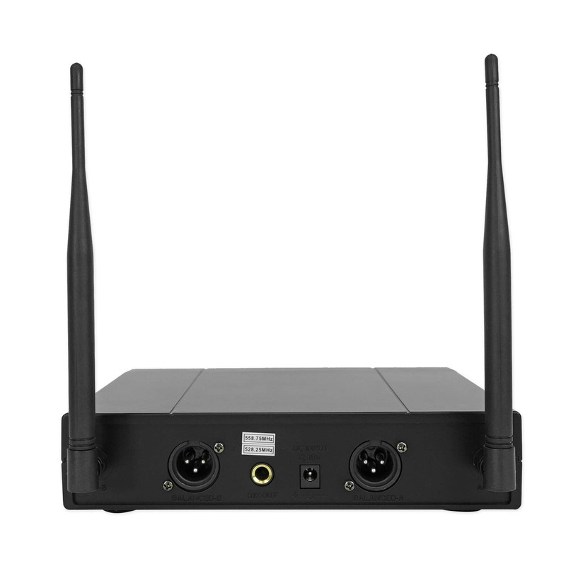 - Specification: Operating Range: 250´- 350´(indoor), 200´- 300´(outdoor), Frequency Range: 500MHz-599MHz, Frequency Stability: 0. 005%, Modulation Mode: UHF, Frequency Response: 50Hz-16KHz ( 3 dB), Dynamic Range: 110dB, S/N: 90dB, T. H. D: < 0. 1%(1KHz)