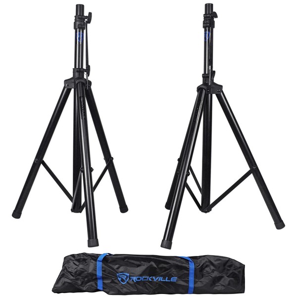 - Pair Rockville RVES1 Adjustable Tripod DJ PA Speaker Stands With Carry Bag.