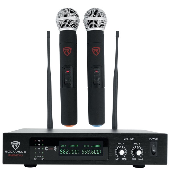 - Features: Rockville RWM71U Dual Handheld Wireless UHF Microphone System. Metal receiver is strong and durable. Excellent quality PCB board with great anti-interference circuitry. This is our 3rd generation of this model which is the result of 4 years of incremental improvements. The quality of these will rival the expensive brands. Each handheld mic has a rubber coating to feel great in your hands. Mics are high sensitivity, unidirectional, wireless cardioid microphones.
