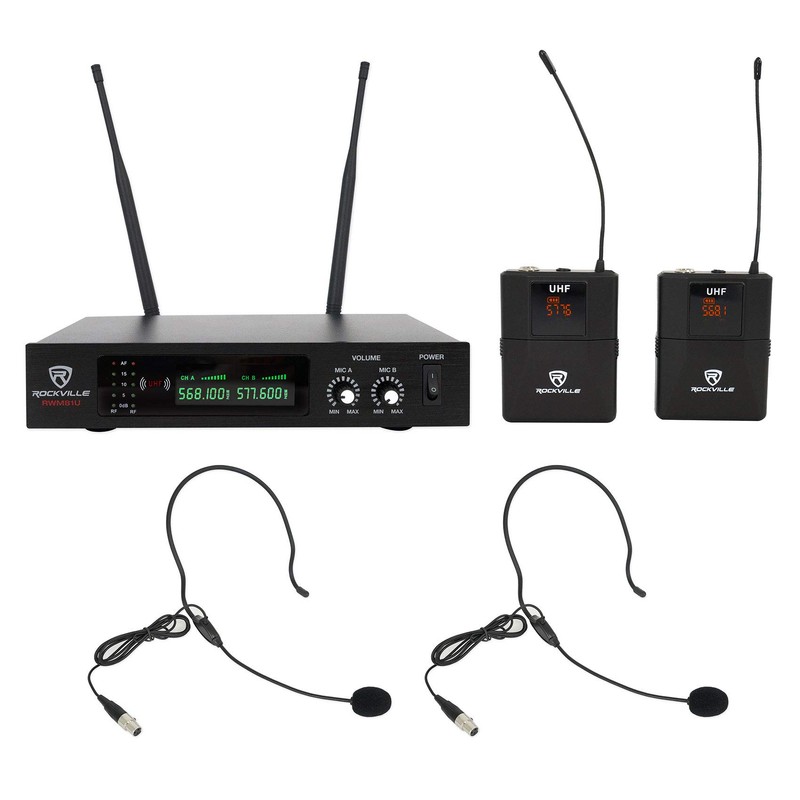 - Rockville RWM81U Dual Wireless UHF Headset Microphone System. High performance wireless headset microphone system. Includes transmitter with two high sensitivity, unidirectional, wireless, cardioid headset microphones.