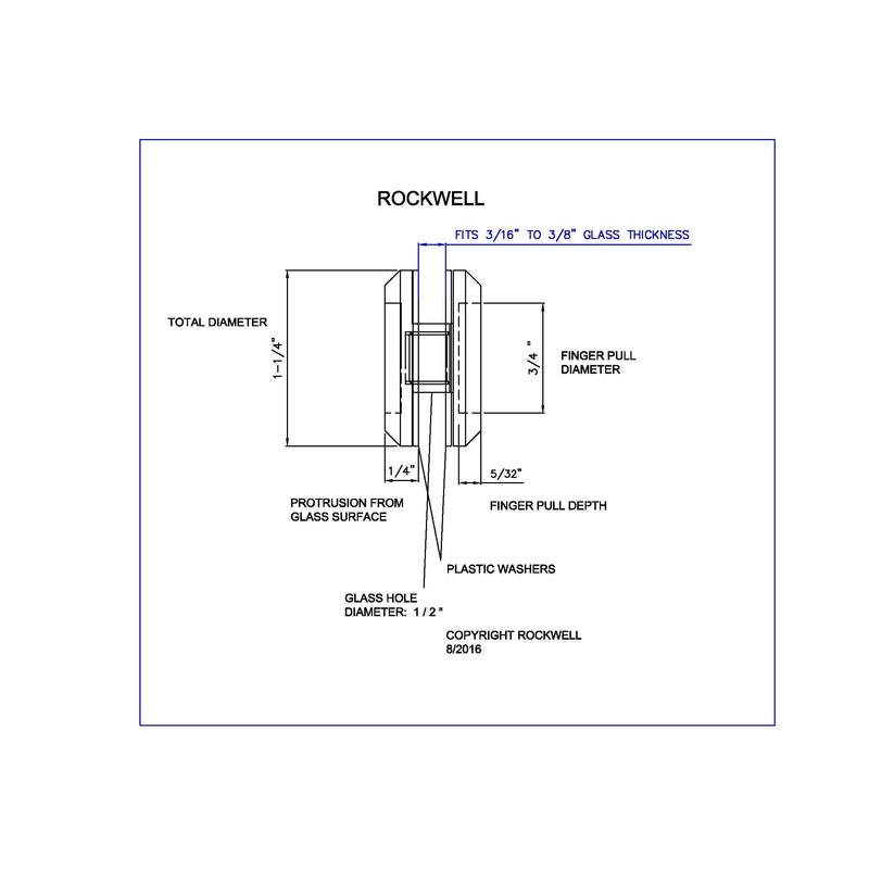 - This product has a 1-1/4 inch overall diameter, protrudes 1/4 inch from the door surface and features a 3/4 inch diameter finger pull with a 5/32-inch depth