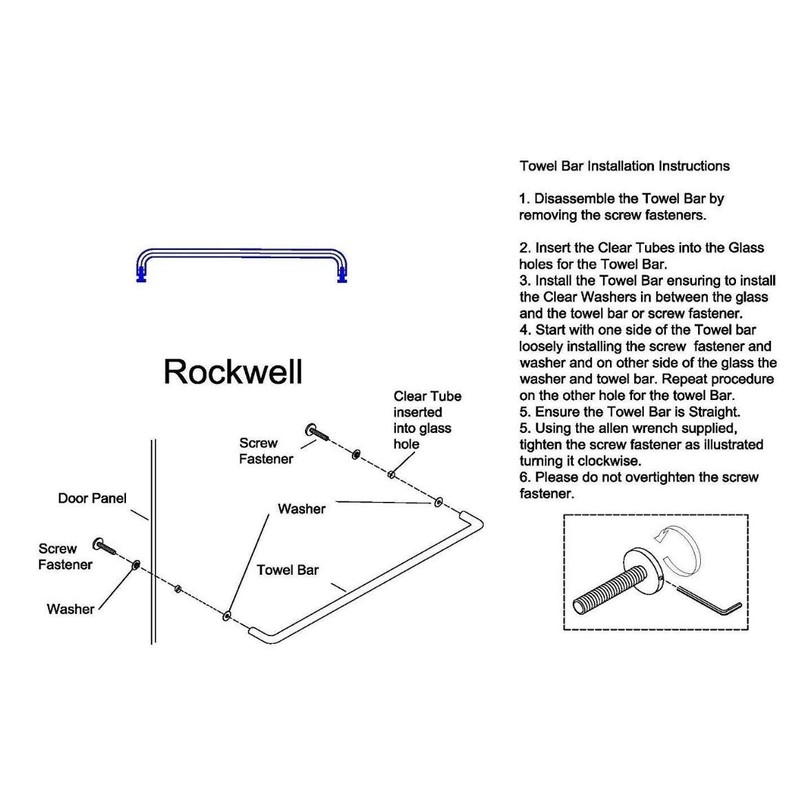 - This Rockwell Single Side Towel Bar 22" in Polished Chrome Finish for Frameless heavy Glass Shower Doors is one of the most Durable door hardware pieces you can buy. It is made to last and manufactured at our high tech ISO 9000 certified facility