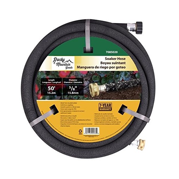Rocky Mountain Goods Soaker Hose - Heavy duty rubber - Saves 70% water - End cap included for additional hose connect - Great for gardens/flower beds - Reinforced fittings (50-Feet by 5/8-Inch) | Rocky Mountain Goods