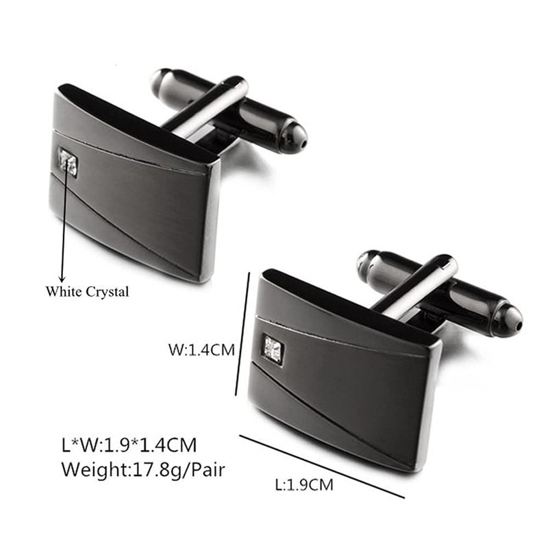 - Product specifications: Material: Stainless steel, zirconia. Color: Black. Set Contents: Cufflinks x 2, alligator tie clip x 1, gift box included. Treatment: Satin finish