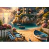 - 【Lighthouse Coast Adults Puzzle】The golden light of the morning sun shines down, seagulls circle, sailboats are hoisting, the blue sea water hits the shore, and two lounge chairs sit quietly, showing a leisurely and comfortable scenery