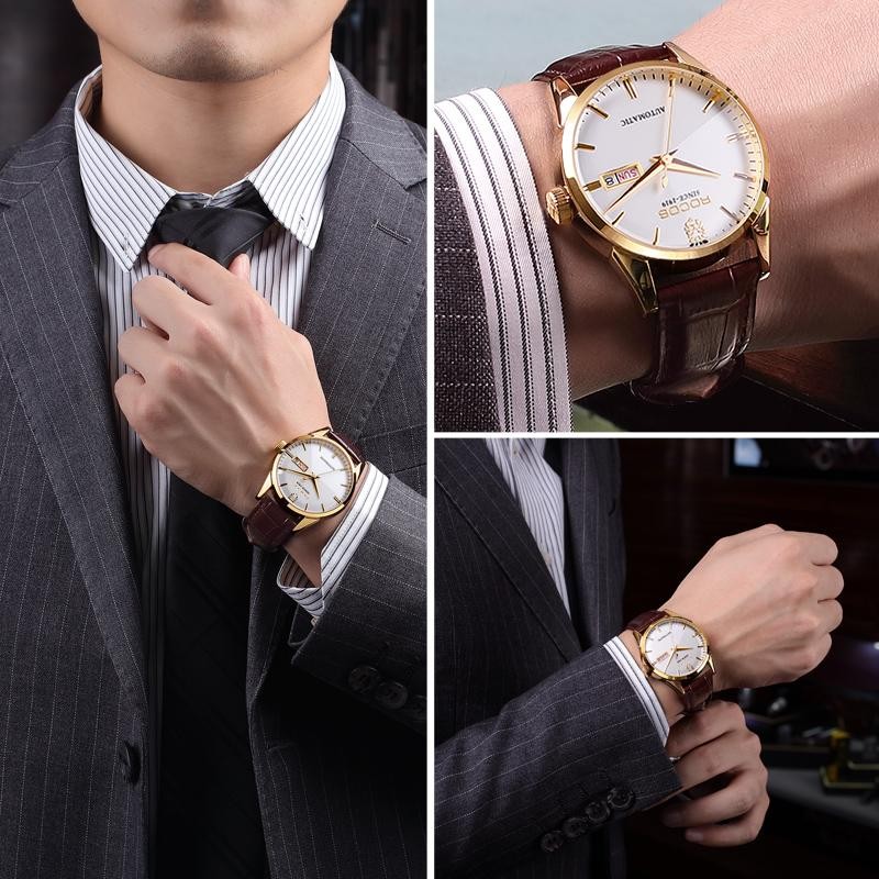 ROCOS Luxury Fully Automatic Mechanical Watch | High-End Stylish Design, Waterproof & Durable, Men's Minimalist Elegance, Showcasing Exceptional Taste:_White face with black belt